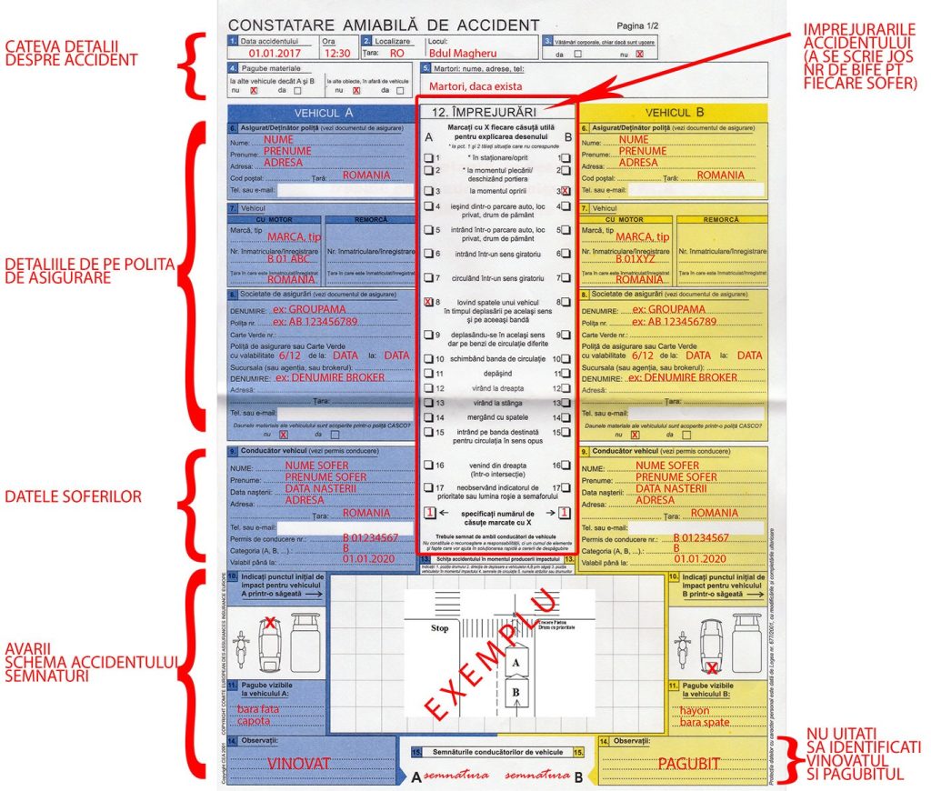 - Trebuie completat cu toate detaliile necesare, inclusiv schița accidentului.